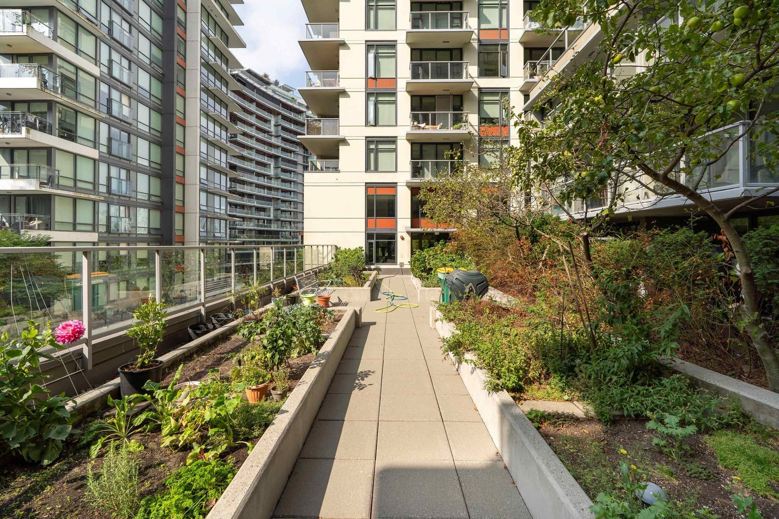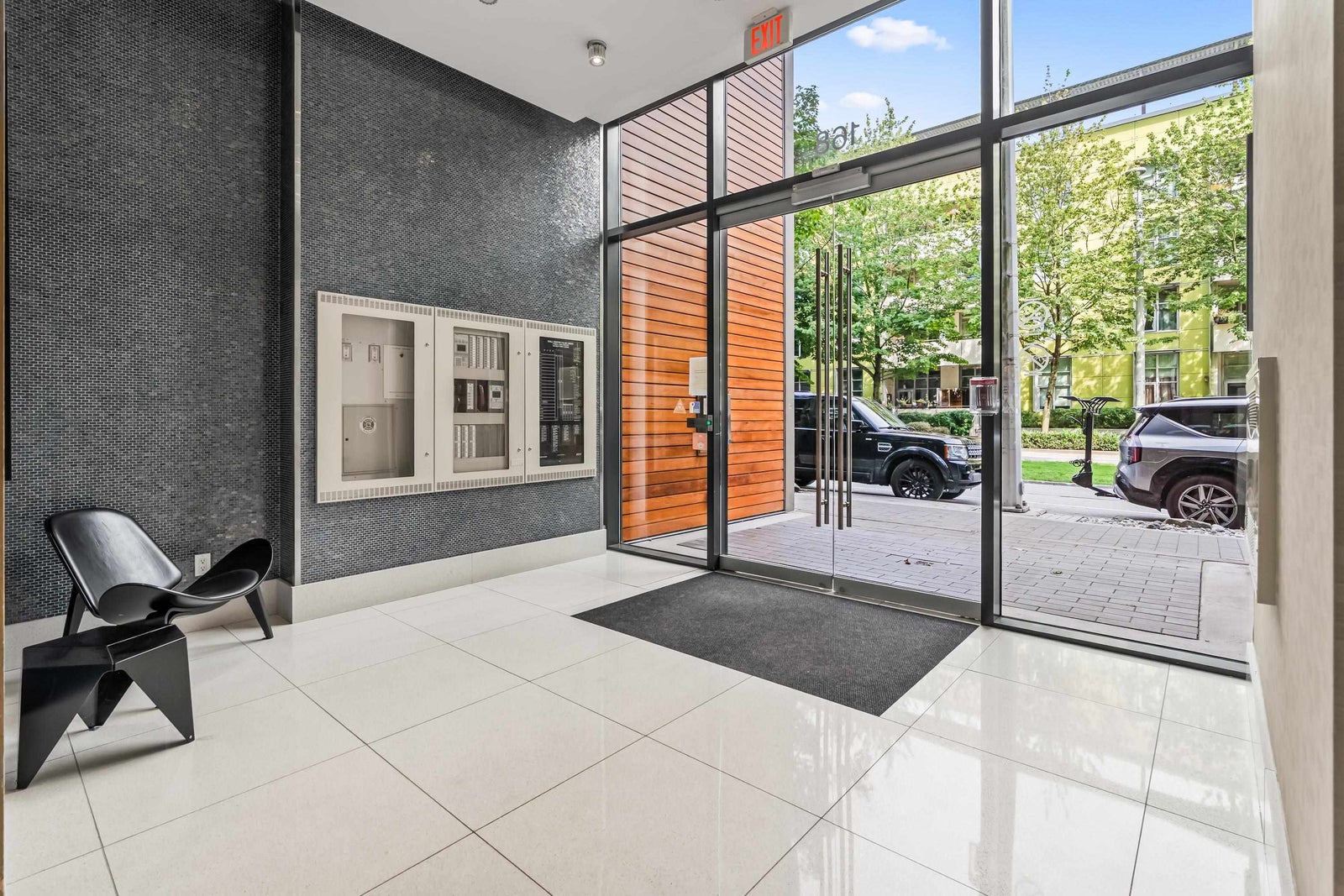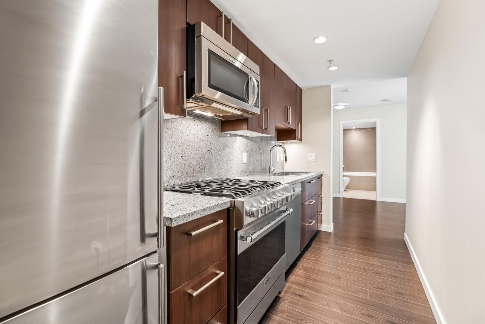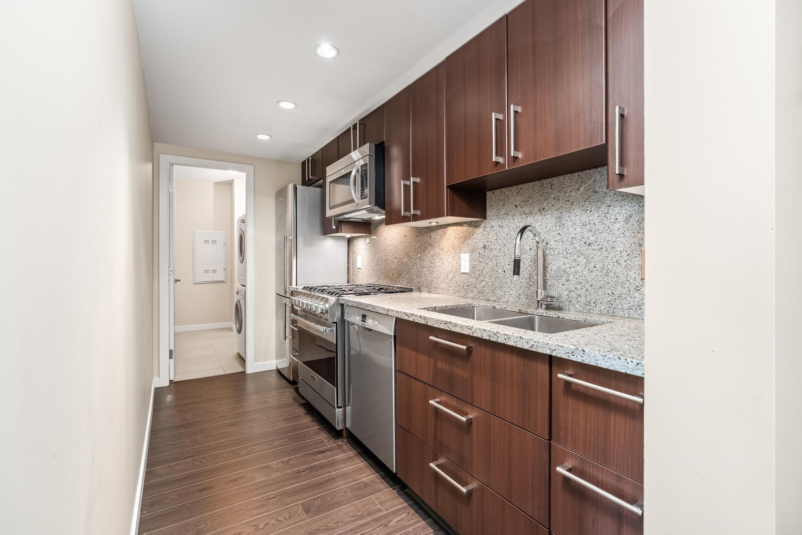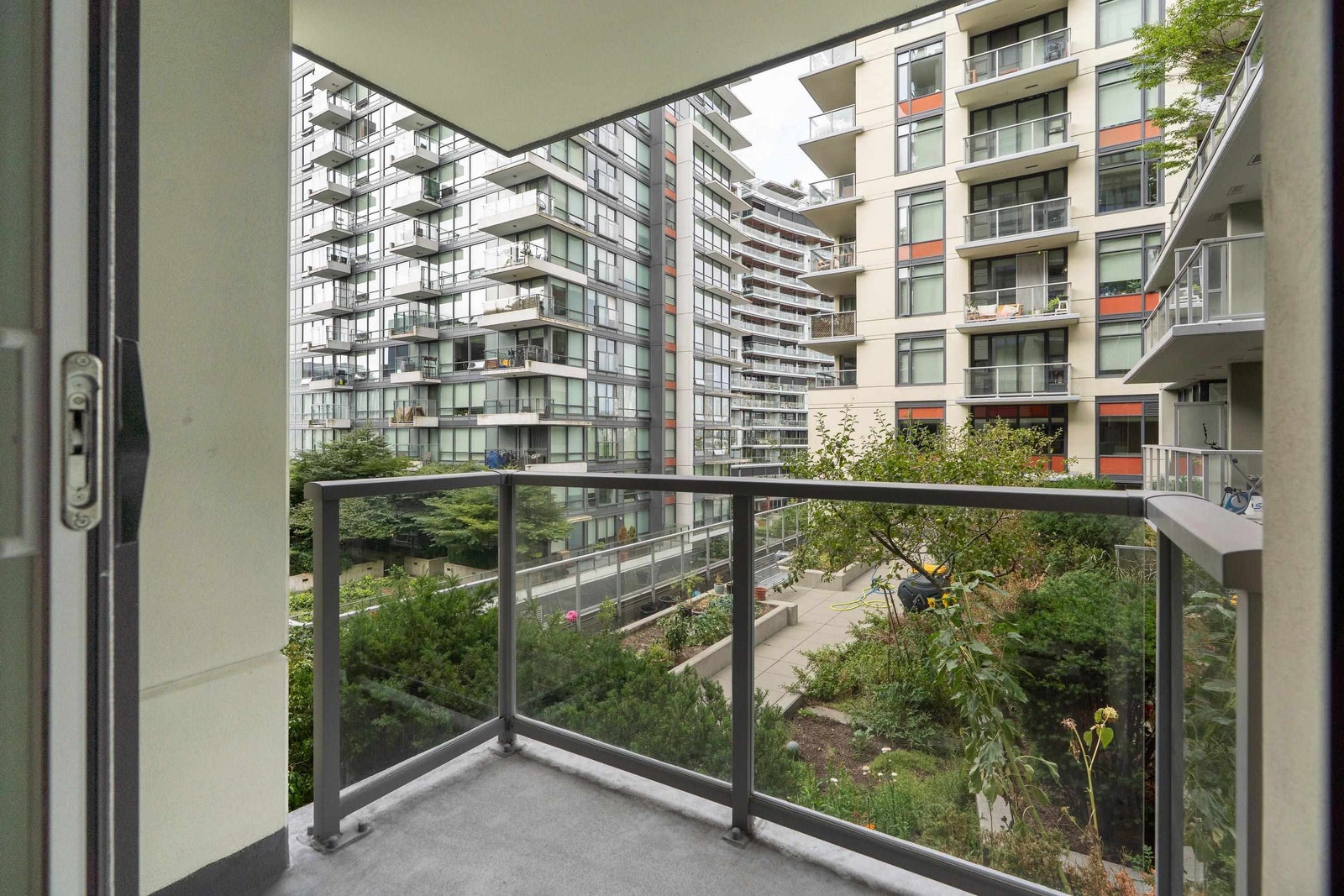 Modern 1-Bed in Olympic Village’s Wall Centre False Creek! This inviting suite offers a smart, functional layout with an open kitchen, full-size appliances, and stone counters. Floor-to-ceiling windows fill the space with natural light, while the private balcony is perfect for relaxing or entertaining. The bedroom is a cozy retreat with efficient storage. Enjoy in-suite laundry, parking, and great amenities including a gym, party lounge, and rooftop gardens. Steps from the Seawall, SkyTrain, shops, and restaurants, this home places you at the centre of Olympic Village living. Imagine morning jogs or bike rides along the Seawall, weekend brunches at nearby cafés. This is more than a home, it's a lifestyle where convenience, community, and city energy come together. 1 parking & 1 locker.