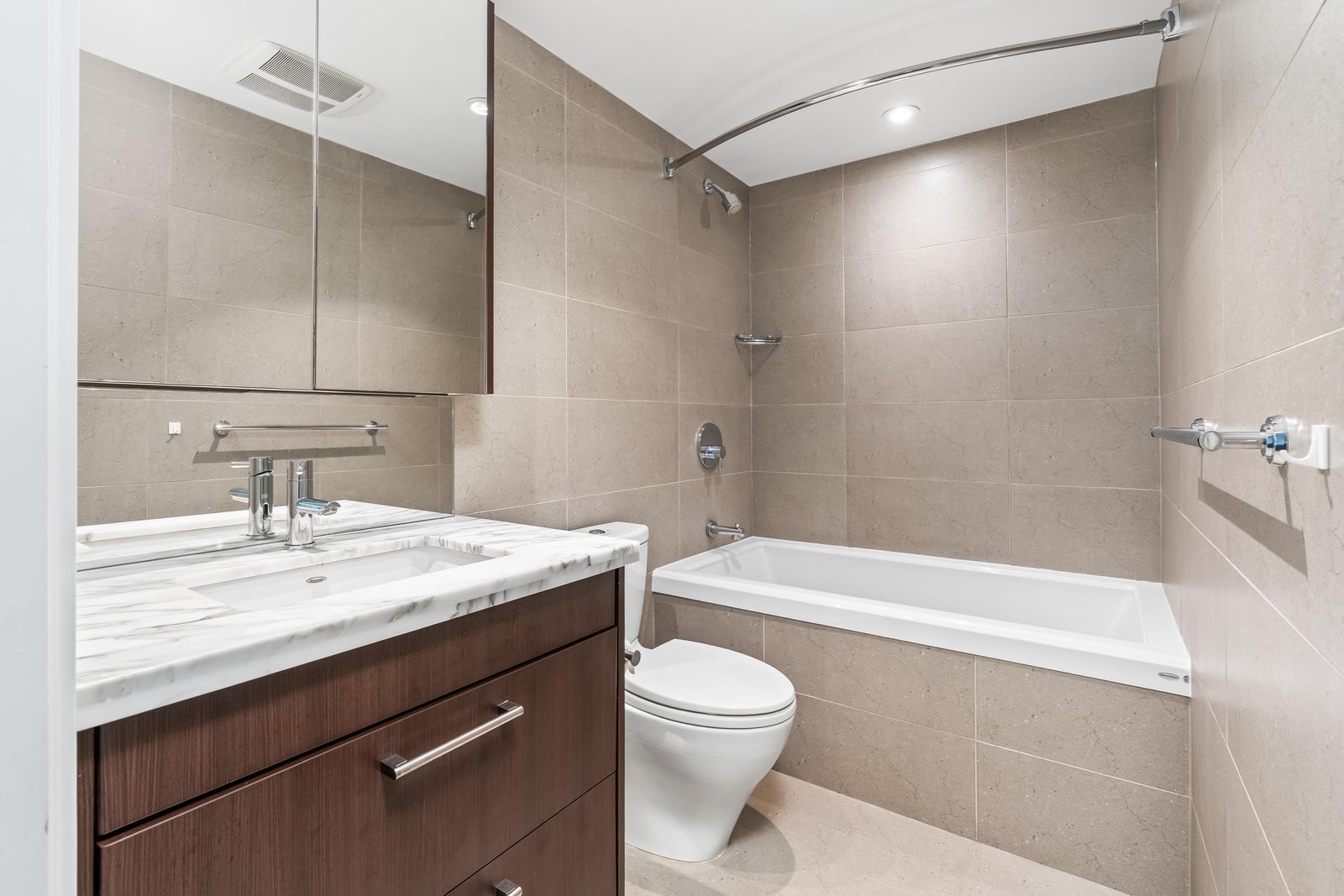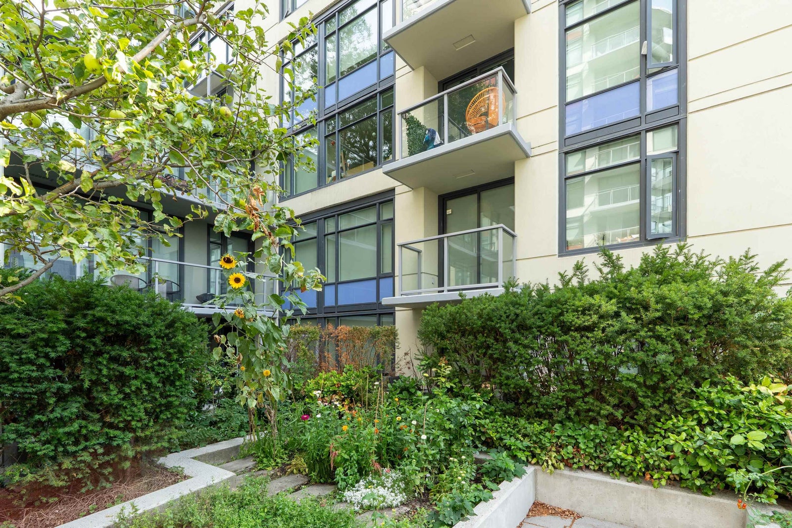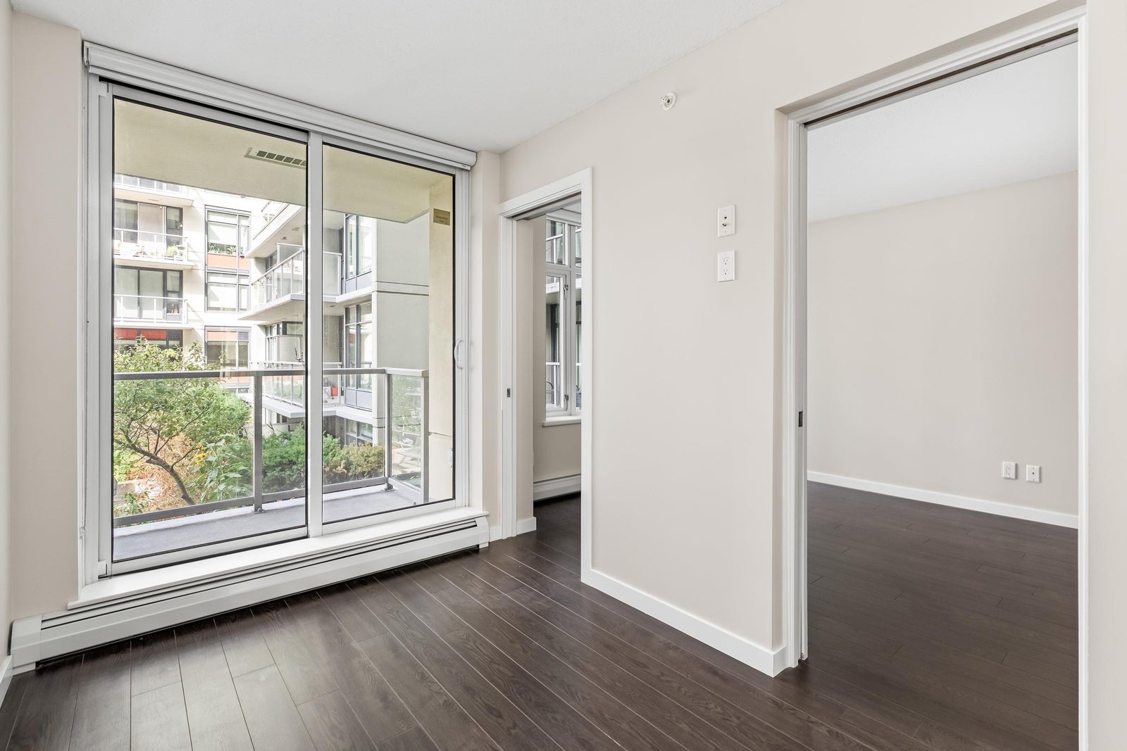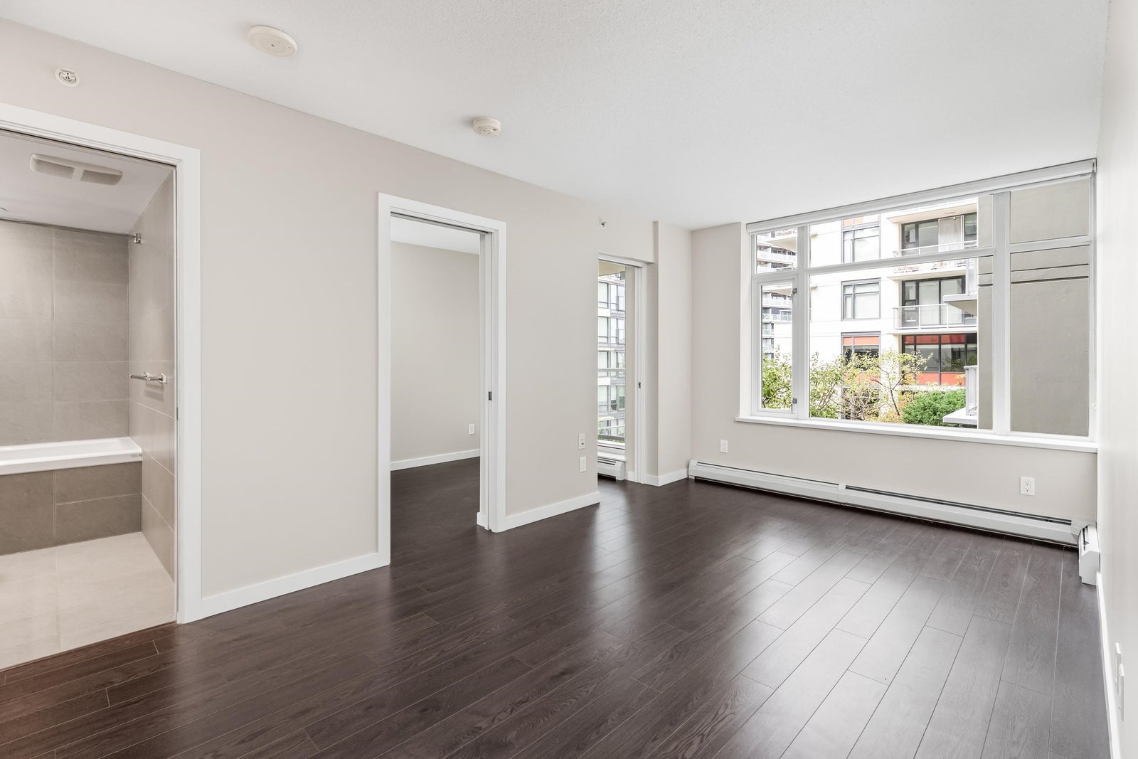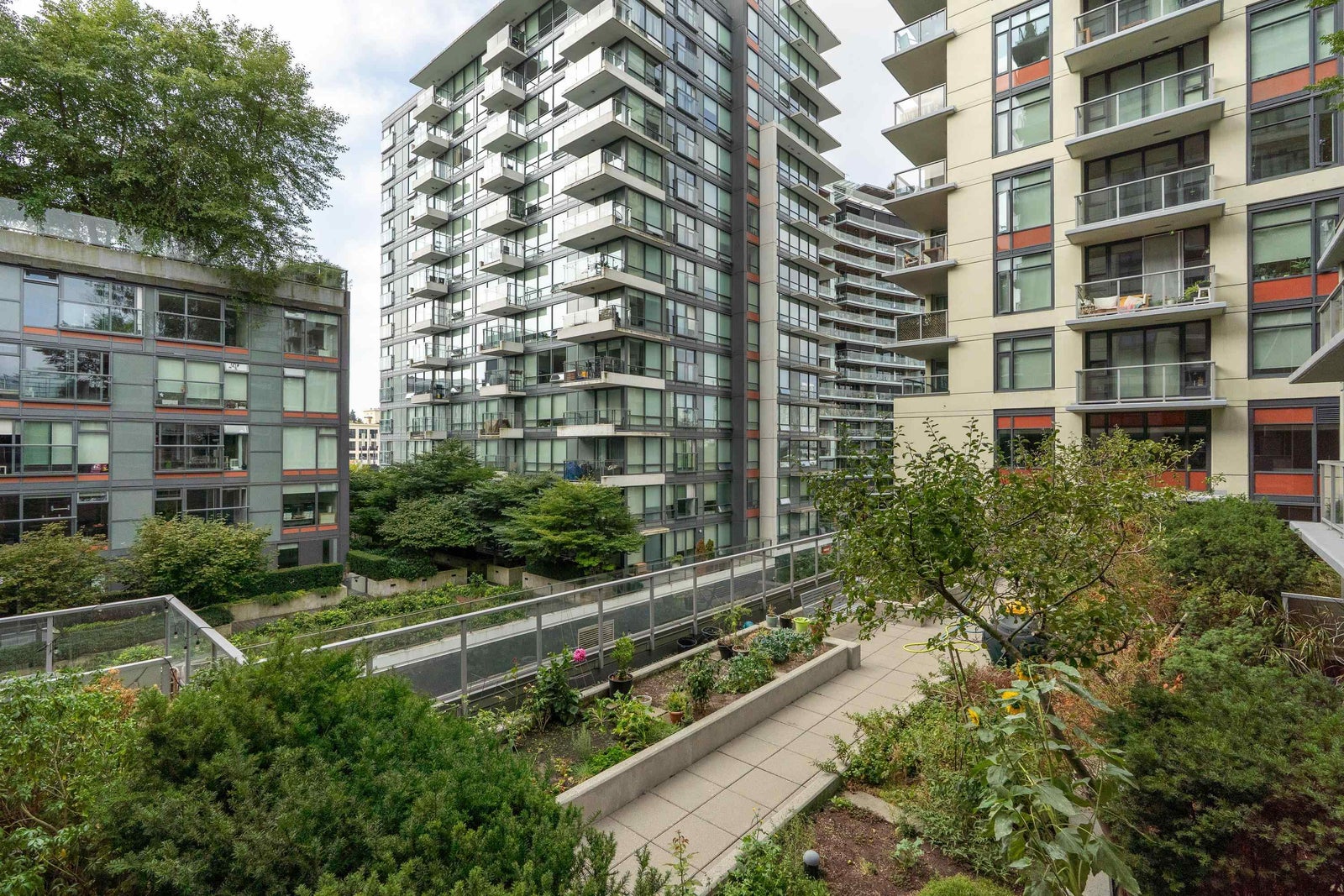 Modern 1-Bed in Olympic Village’s Wall Centre False Creek! This inviting suite offers a smart, functional layout with an open kitchen, full-size appliances, and stone counters. Floor-to-ceiling windows fill the space with natural light, while the private balcony is perfect for relaxing or entertaining. The bedroom is a cozy retreat with efficient storage. Enjoy in-suite laundry, parking, and great amenities including a gym, party lounge, and rooftop gardens. Steps from the Seawall, SkyTrain, shops, and restaurants, this home places you at the centre of Olympic Village living. Imagine morning jogs or bike rides along the Seawall, weekend brunches at nearby cafés. This is more than a home, it's a lifestyle where convenience, community, and city energy come together. 1 parking & 1 locker.