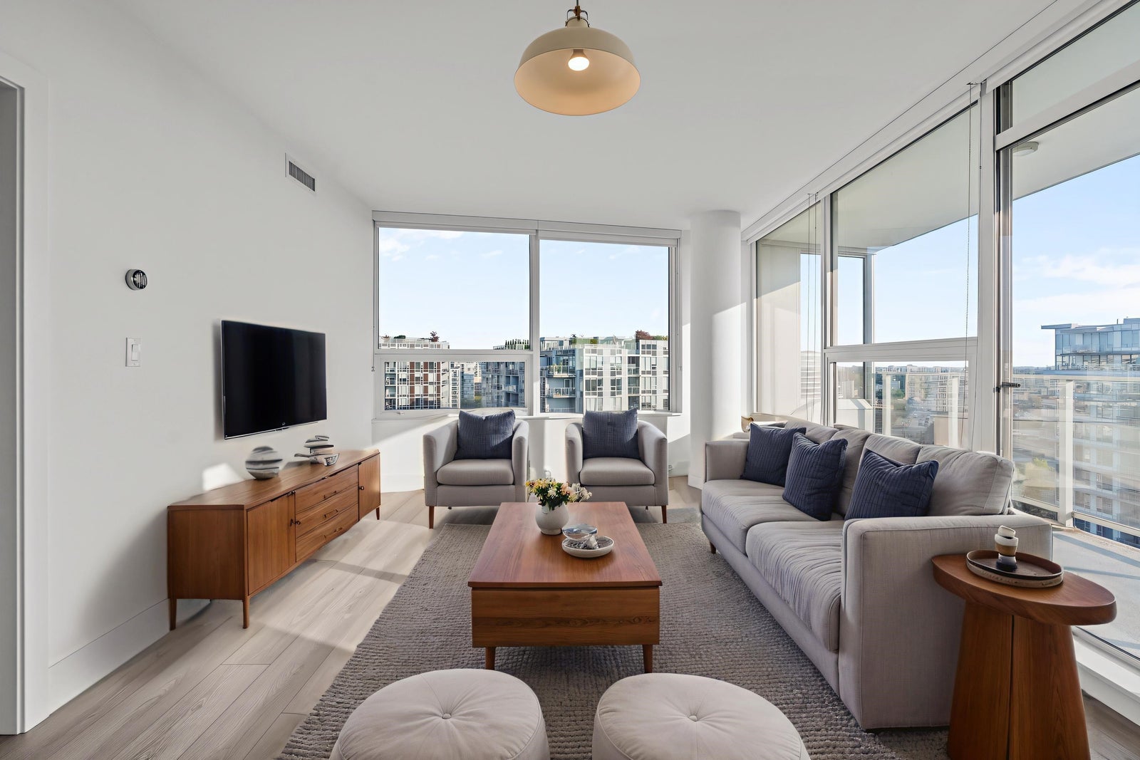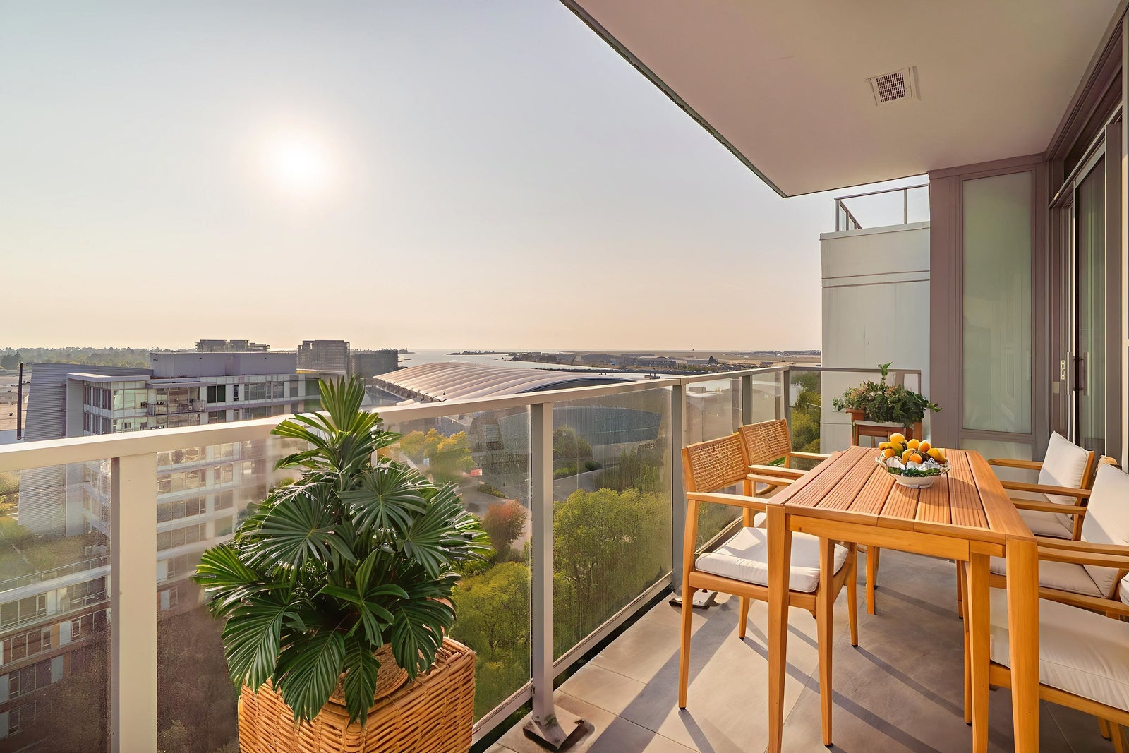 Experience elevated living in this sub-penthouse at River Park Place 2 by Intracorp. Immaculately maintained, this home showcases breathtaking north-facing views of the Fraser River, YVR, and the North Shore mountains. The open layout is filled with natural light, highlighting the superb condition throughout. Life here means being steps from Richmond Oval, vibrant dining, shops, and easy Canada Line access, while enjoying the best of the River District lifestyle. Within the complex, resort-style amenities await—concierge, fitness centre, basketball court, lounge, and rooftop garden. A rare opportunity to own a home where modern design meets unbeatable convenience. Comes with 1 parking and 1 locker—modern living with ultimate convenience. Pictures with furnishing are virtually staged.