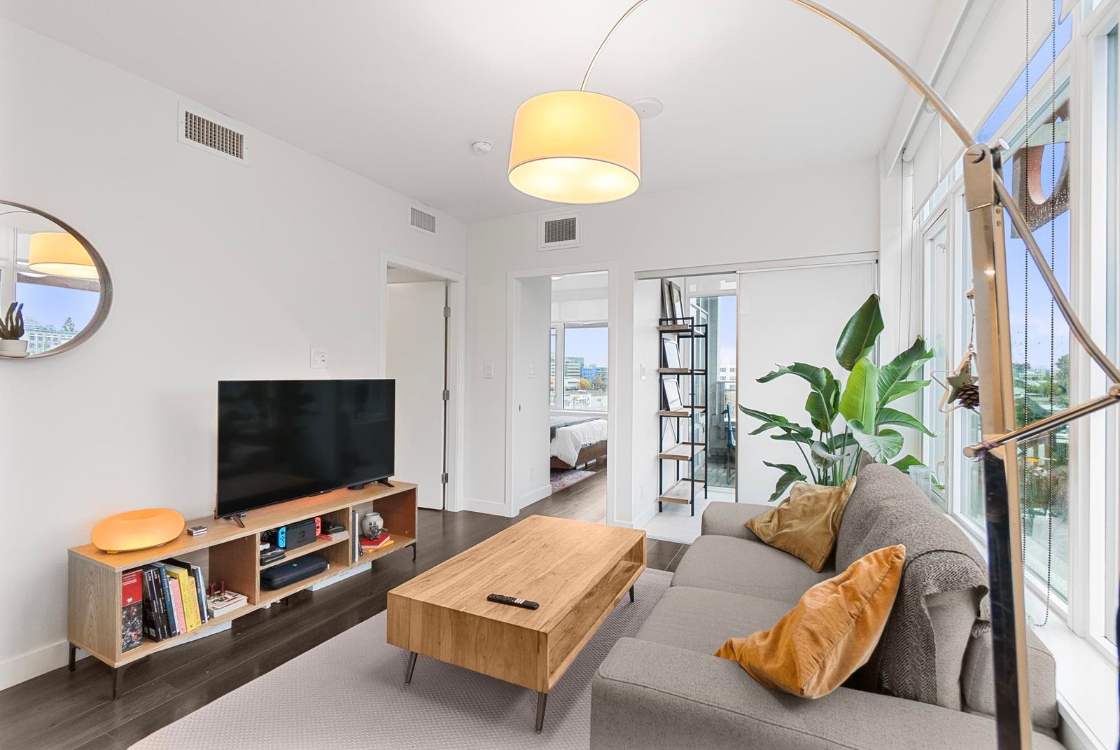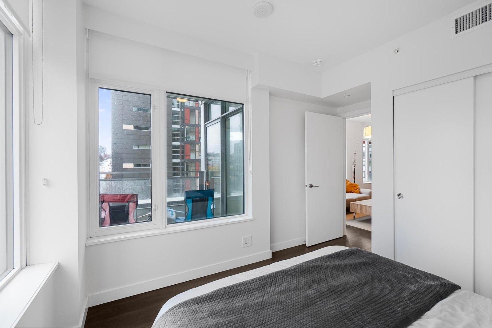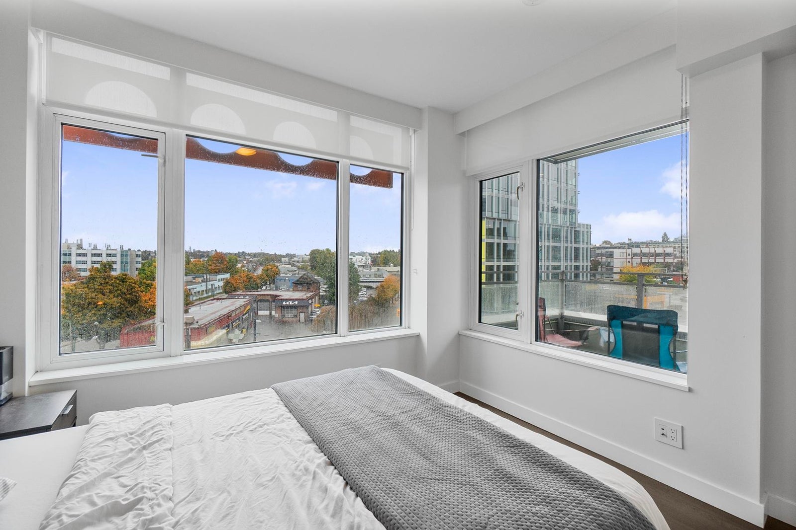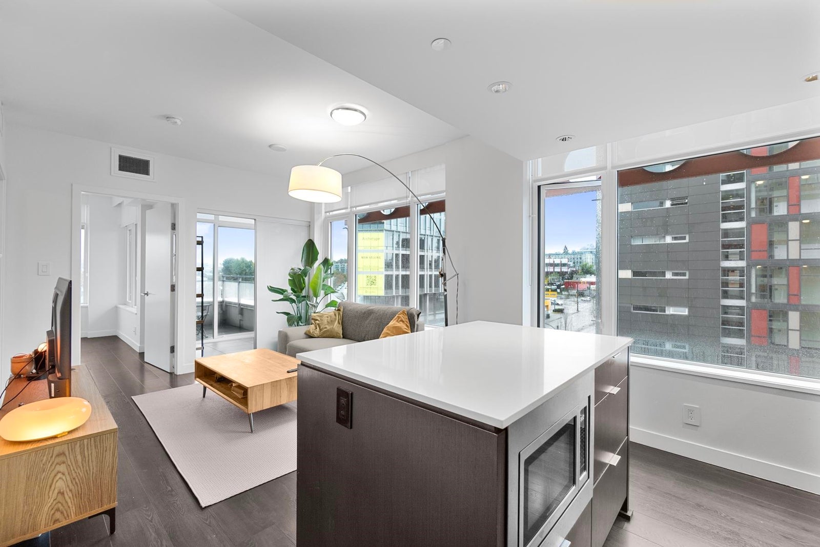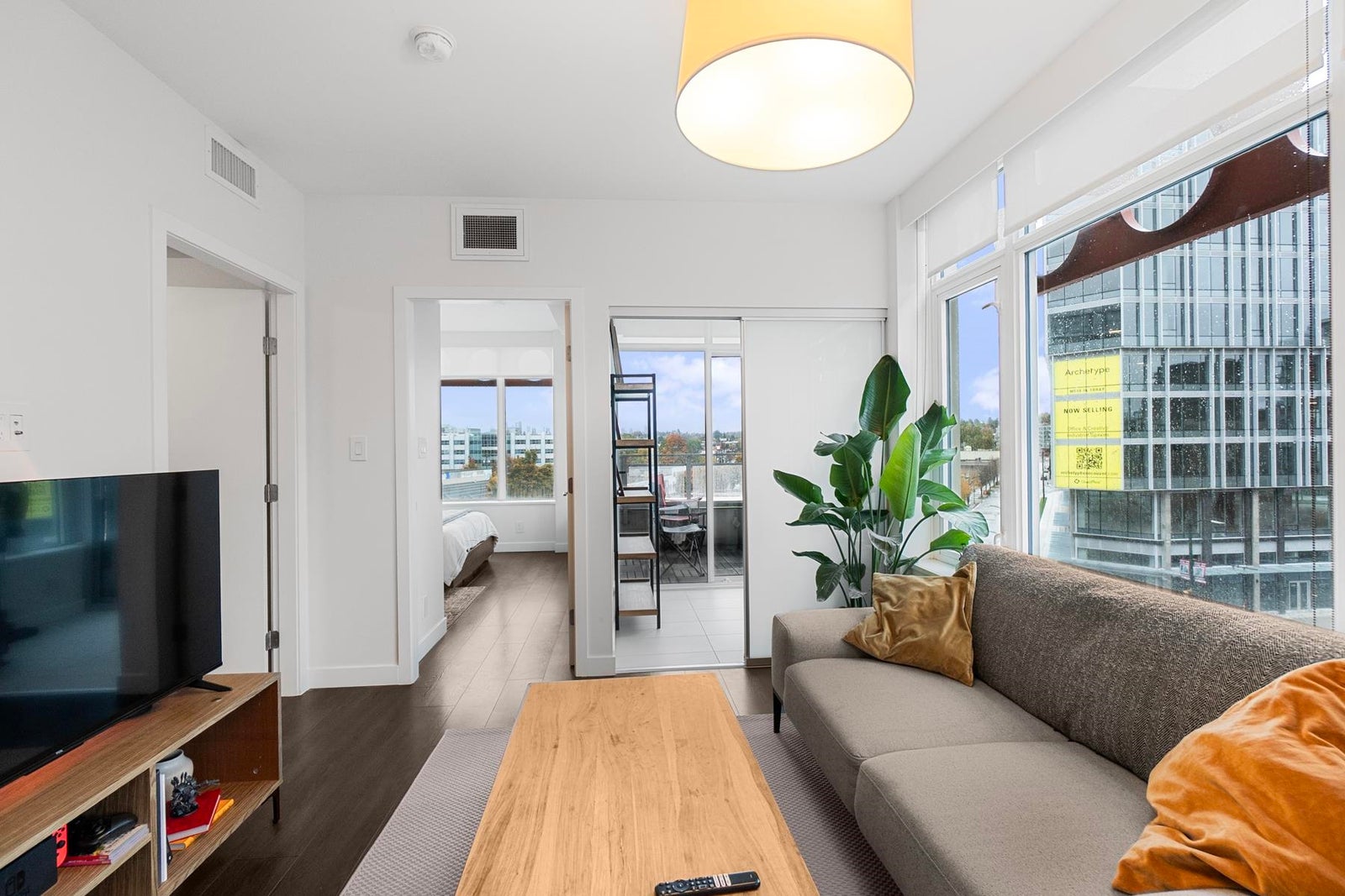 Welcome to this bright and versatile home at Block 100 by Onni. Thoughtfully designed, it features one bedroom plus two spacious dens—perfect for a home office, nursery, or guest space. The open living and dining area flows to a covered balcony, ideal for morning coffee or evening relaxation. A modern kitchen offers full-sized stainless steel appliances, sleek cabinetry, and quartz countertops. The bedroom provides ample closet space, while the dens add flexibility for work or creative use. Enjoy air conditioning, parking, and access to premium amenities including a fitness centre, lounge, and rooftop deck. Steps to the seawall, SkyTrain, cafés, and shops, this home delivers the best of urban living. An excellent choice for professionals or investors alike.