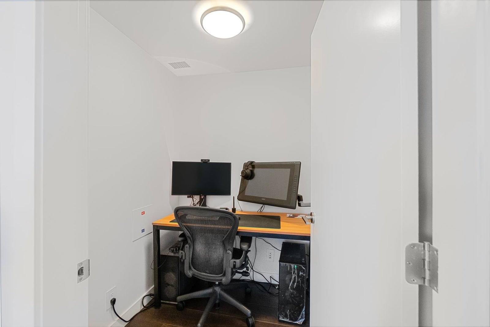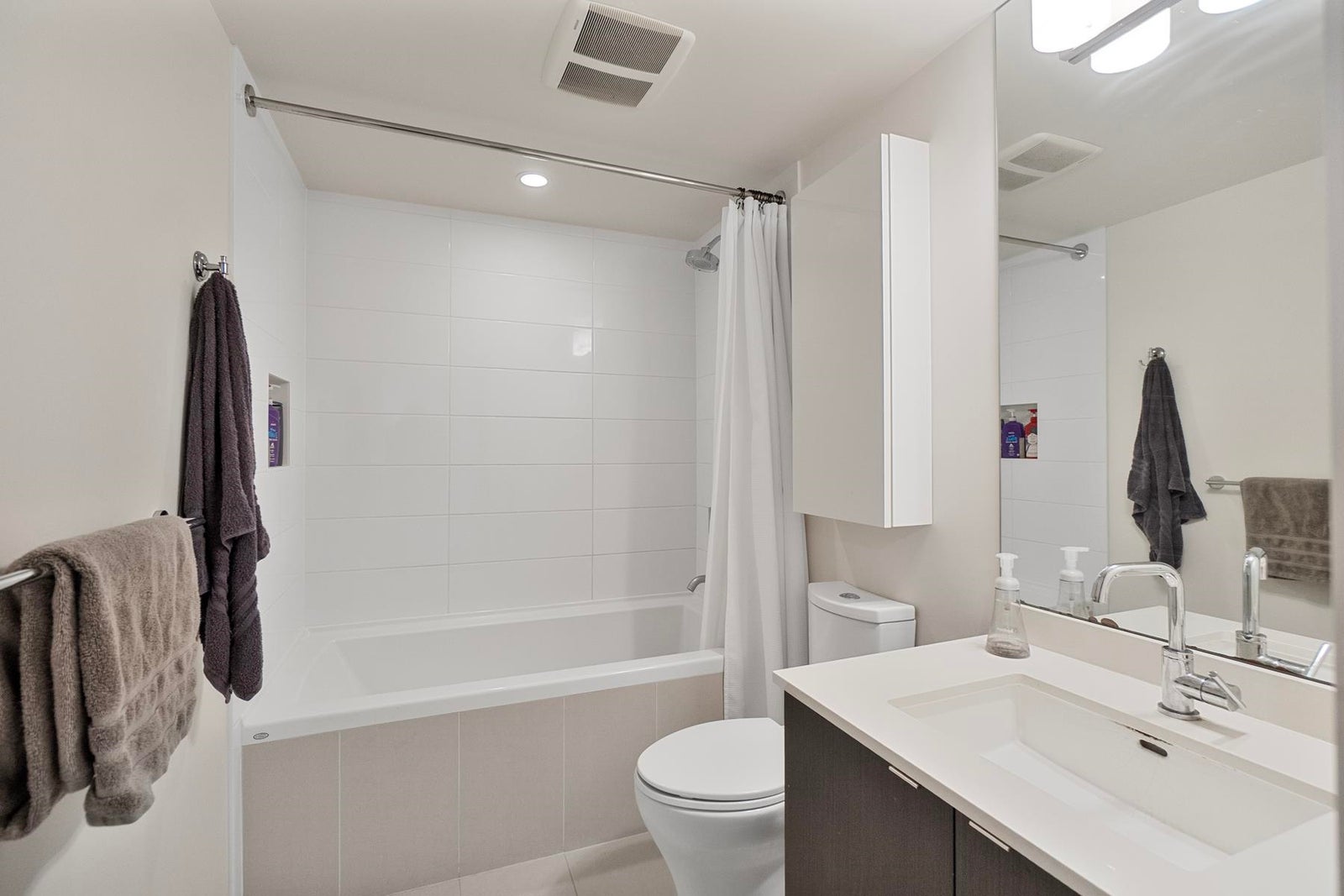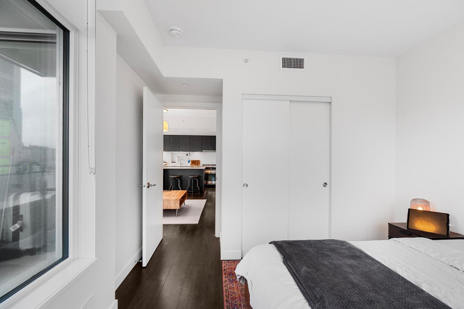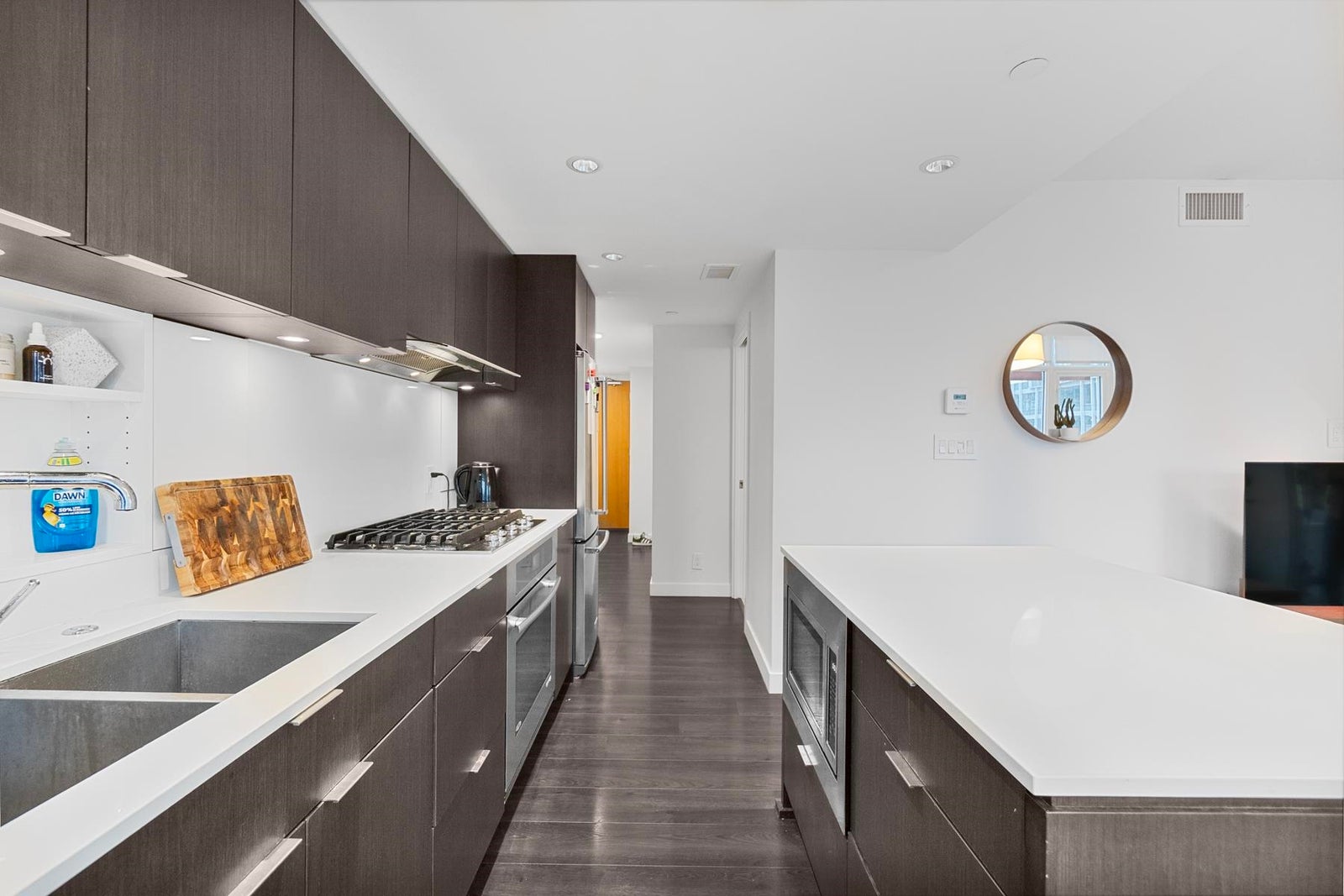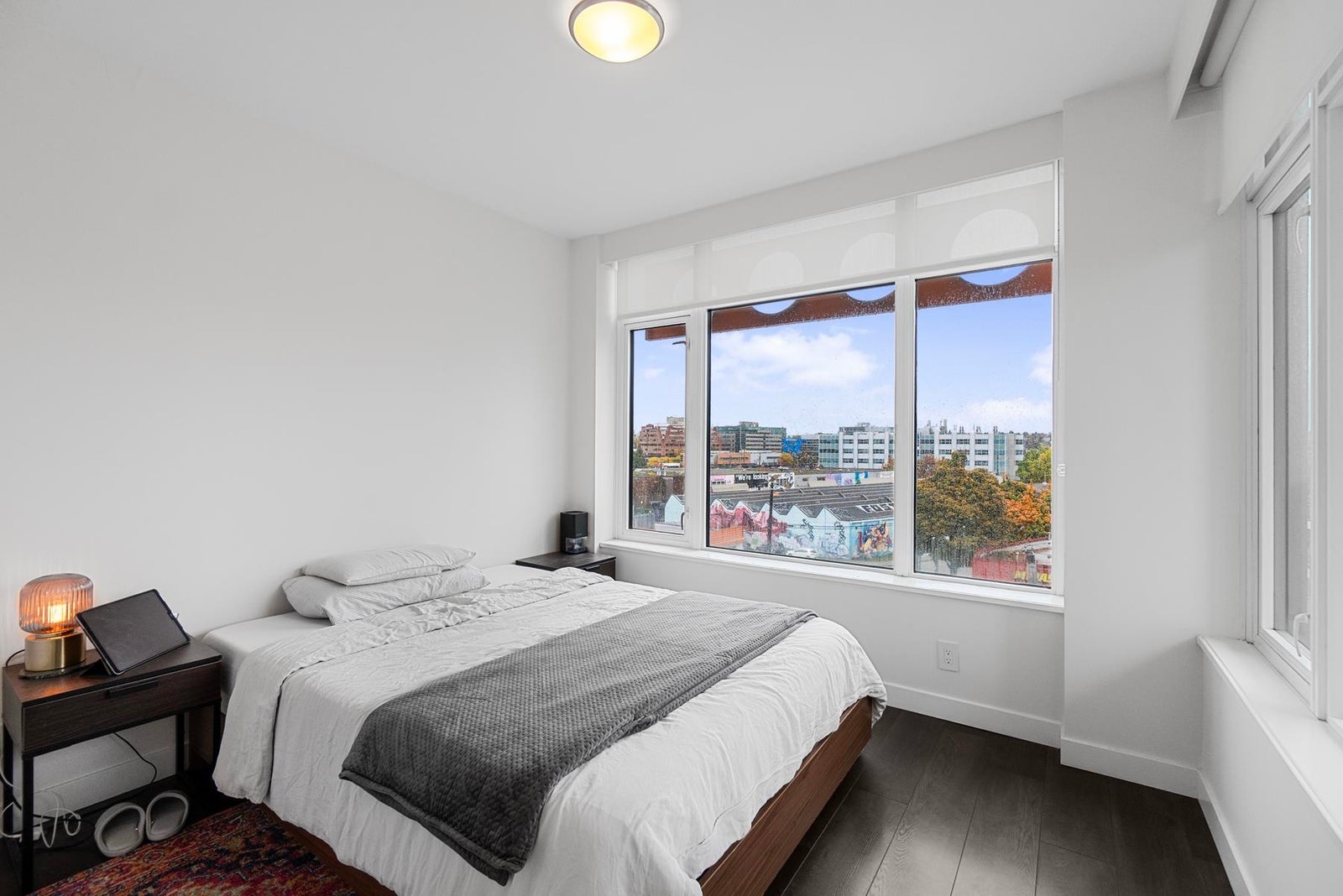 Welcome to this bright and versatile home at Block 100 by Onni. Thoughtfully designed, it features one bedroom plus two spacious dens—perfect for a home office, nursery, or guest space. The open living and dining area flows to a covered balcony, ideal for morning coffee or evening relaxation. A modern kitchen offers full-sized stainless steel appliances, sleek cabinetry, and quartz countertops. The bedroom provides ample closet space, while the dens add flexibility for work or creative use. Enjoy air conditioning, parking, and access to premium amenities including a fitness centre, lounge, and rooftop deck. Steps to the seawall, SkyTrain, cafés, and shops, this home delivers the best of urban living. An excellent choice for professionals or investors alike.