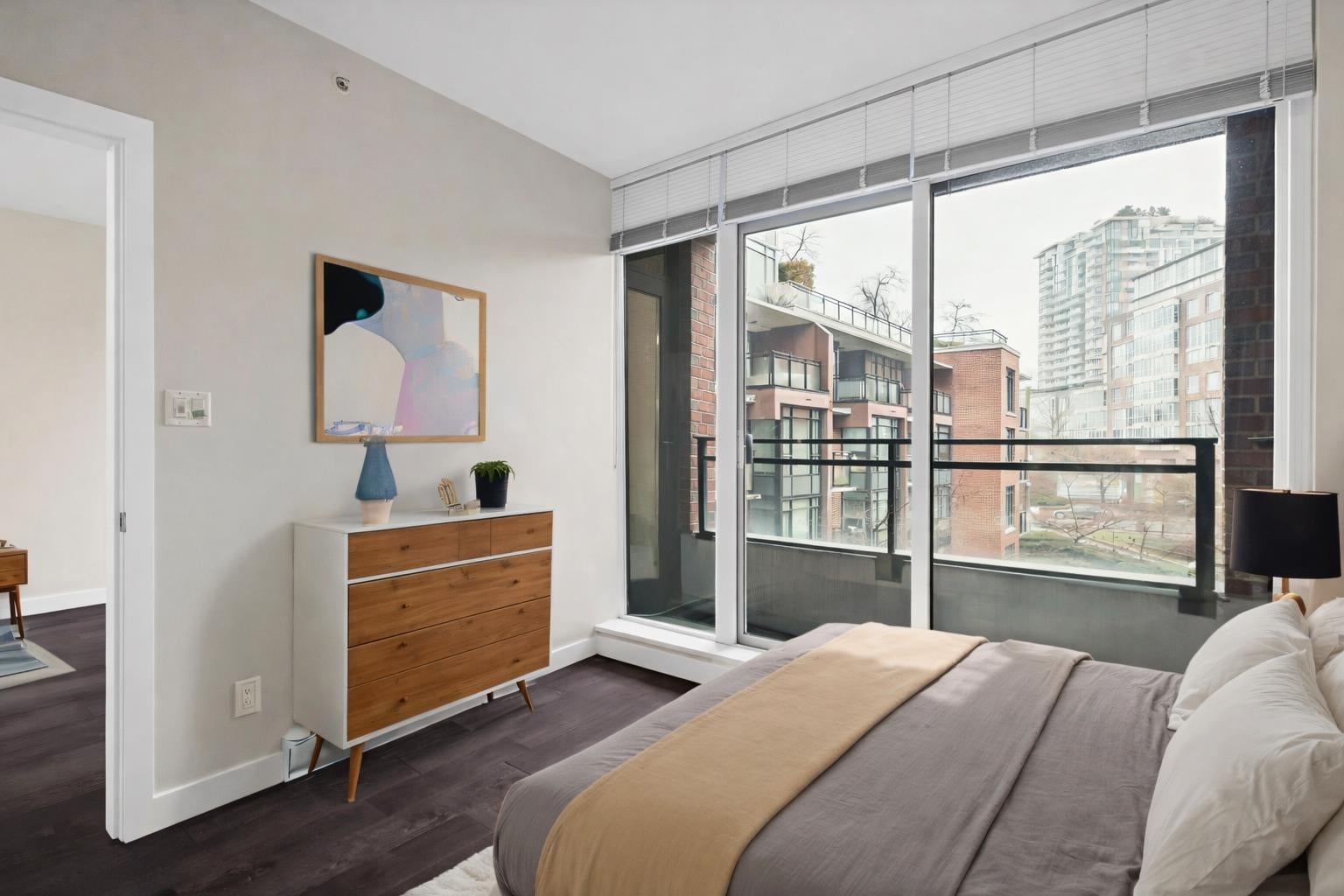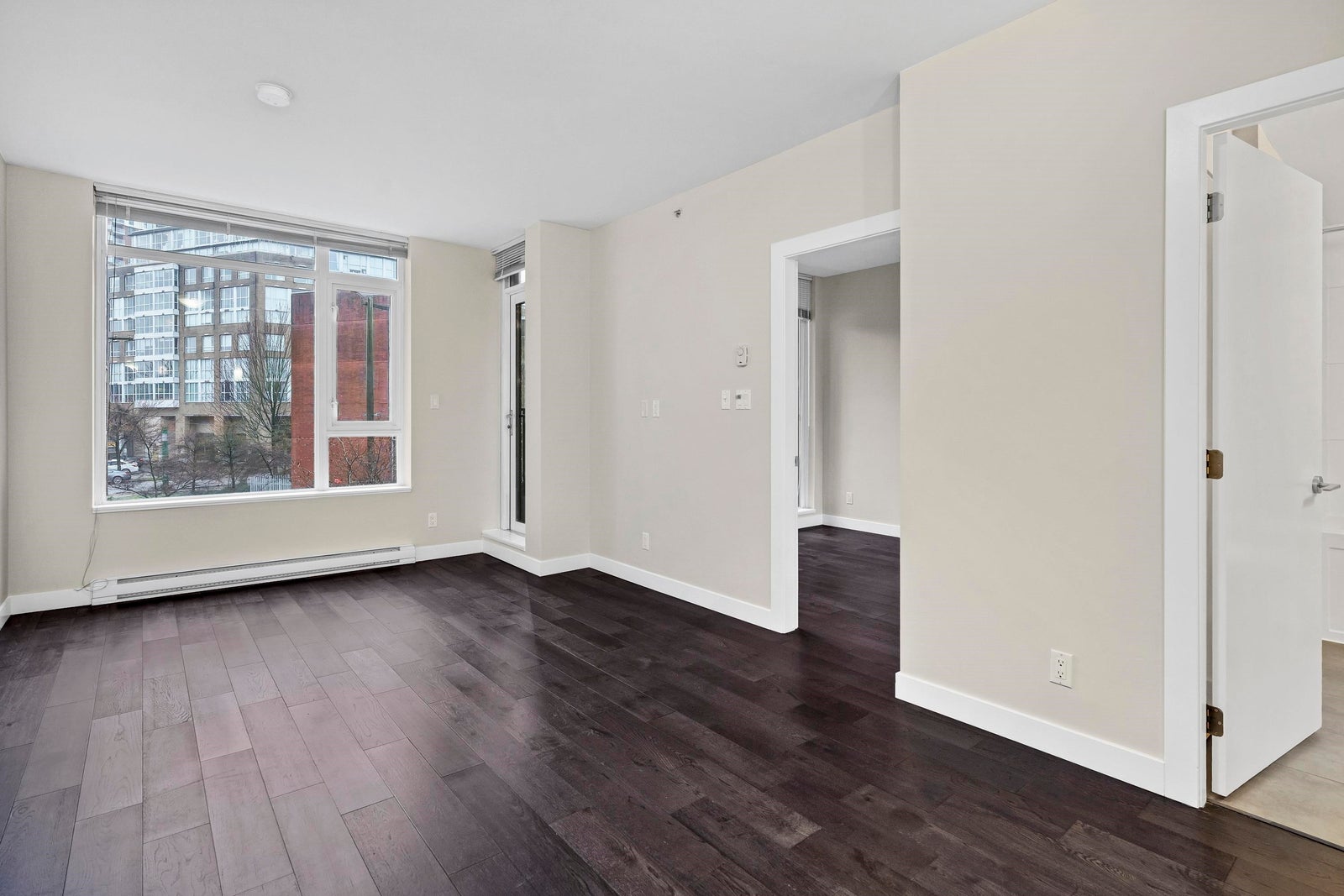 Well designed 1 bedroom plus den home at Social by Onni. Efficient layout featuring a bright living room, dining area, and a functional kitchen with counter seating. Spacious bedroom with closet and access to a private balcony. The den is perfect for a home office or additional storage. This home also offers in suite laundry, one EV ready parking stall, and a storage locker. Social is a well managed concrete building with concierge, fitness centre, party room, and outdoor garden areas. Located steps to the SkyTrain, Olympic Village, Science World, the seawall, cafes, breweries, restaurants, and everyday conveniences. A great opportunity to live in one of Vancouver’s most dynamic and walkable neighbourhoods. Furnished pictures are virtually staged. OPEN HOUSE MARCH 21/22 12:00PM-2:00PM.